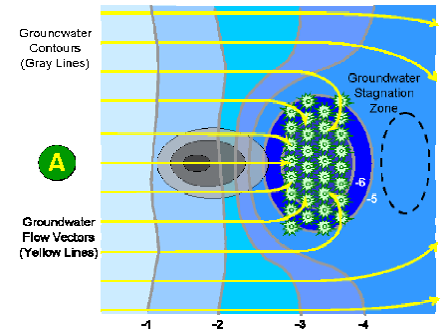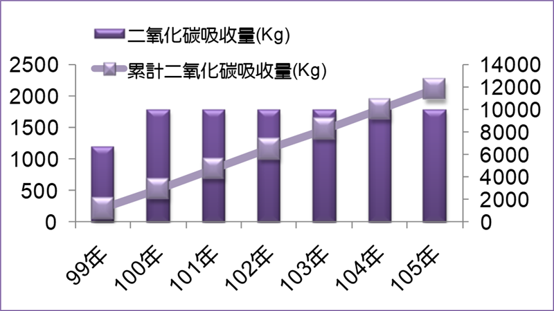 本場地污染面積較大,如以大面積開挖工法將增加CO2排放量,故為降低碳足跡排放量,選擇以原位修復工法於主要污染源進行水力控制,並搭配原位氣相抽提技術(SVE)及空氣注入法(AS)進行修復,系統操作亦定期檢討及調整操作時間,以達能源使用最大效益。此外,本場地亦導入植生複育工法進行修復作業,於主要污染區域之綠地區栽種培地茅進行土壤有機污染物修復,另於污染團下游栽種小葉欖仁,利用其水力控制之特性組成水力控制牆,防止污染向下游移動,以達到同時具備污染修復、節能減碳及景觀美化等多重效益。