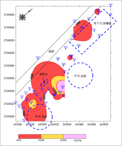 本場地地下水萘濃度由原0.423mg/L降為0.0015mg/L,土壤TPH濃度由17,800mg/kg降為ND,而置於複育場之土壤TPH濃度經複育後皆<500mg/kg,均低於土壤及地下水污染管制標準,已於2014年完成污染修復工作。
