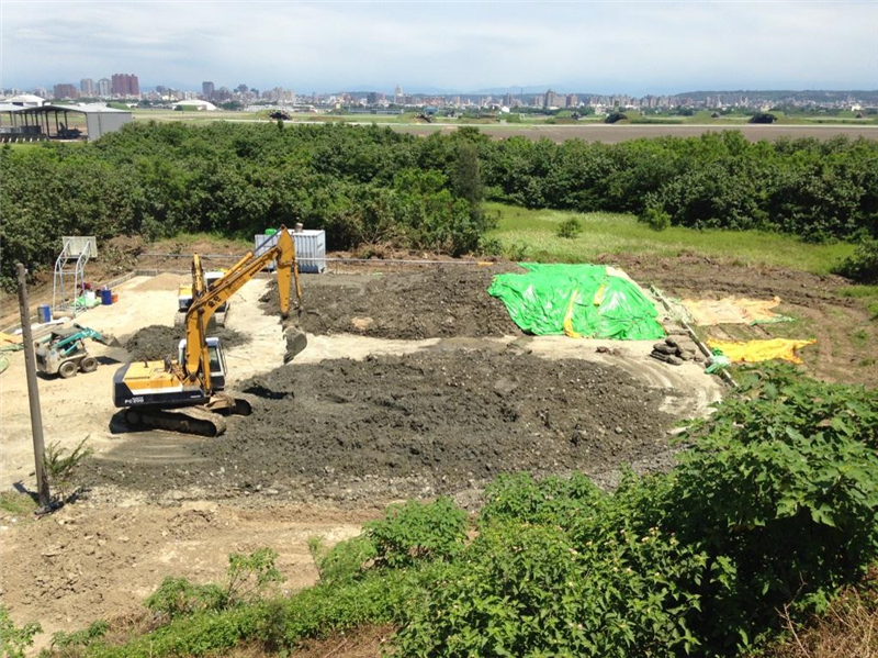 因本場地地下環境存有浮油,以雙相抽提工法進行原位浮油回收工作,共計回收浮油約578L,並進行原位化學氧化、沖排及生物曝氣等模場試驗工作,以模場試驗評估影響半徑,依試驗結果於場內設置原位生物曝氣修復系統並啓動操作,部分區域則採土壤開挖工法,並於場內設置生物複育場,針對開挖出污染土壤採農耕法(Land farming)及生物堆法(Biopile)進行異位現場生物複育工作。
